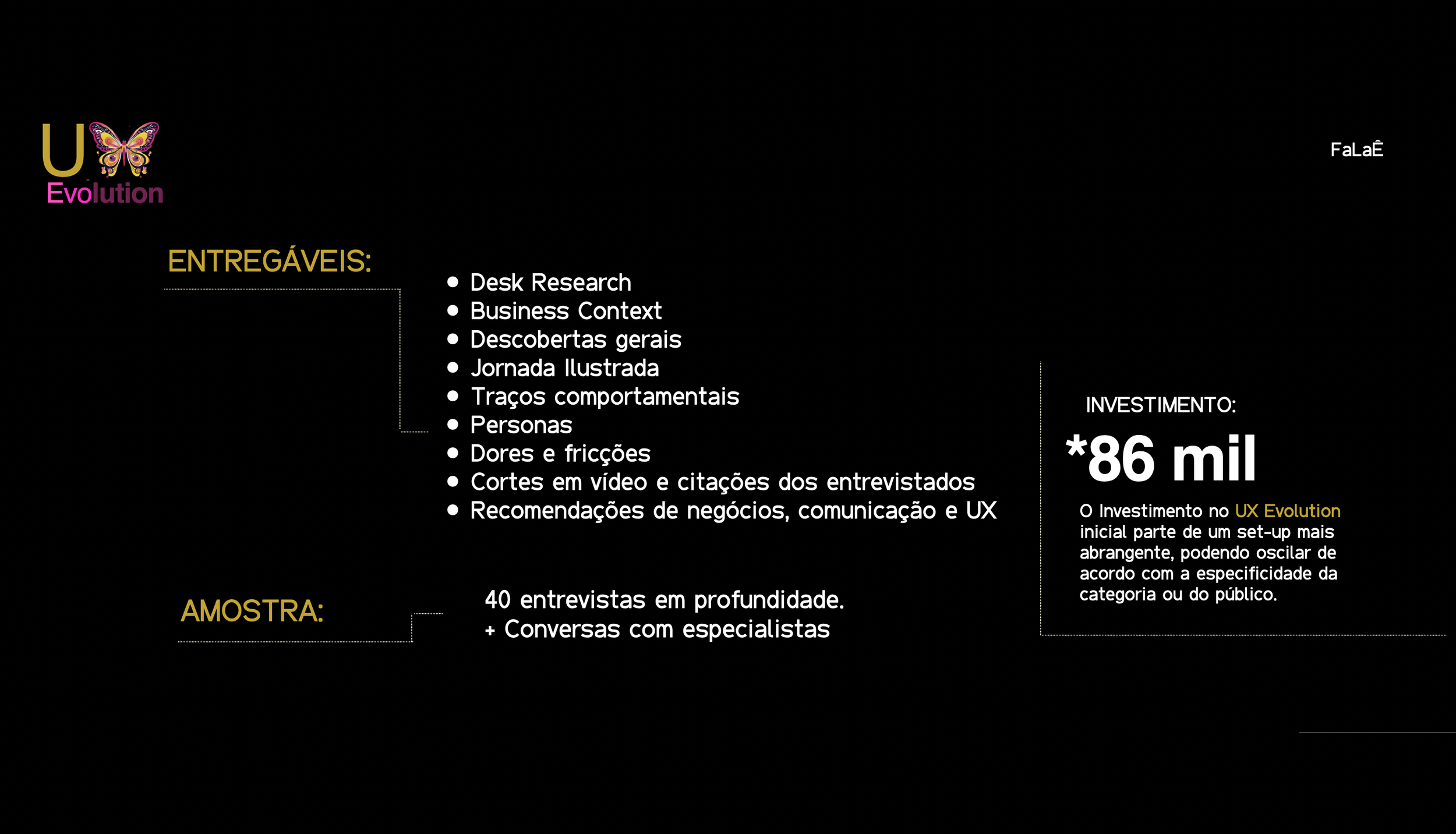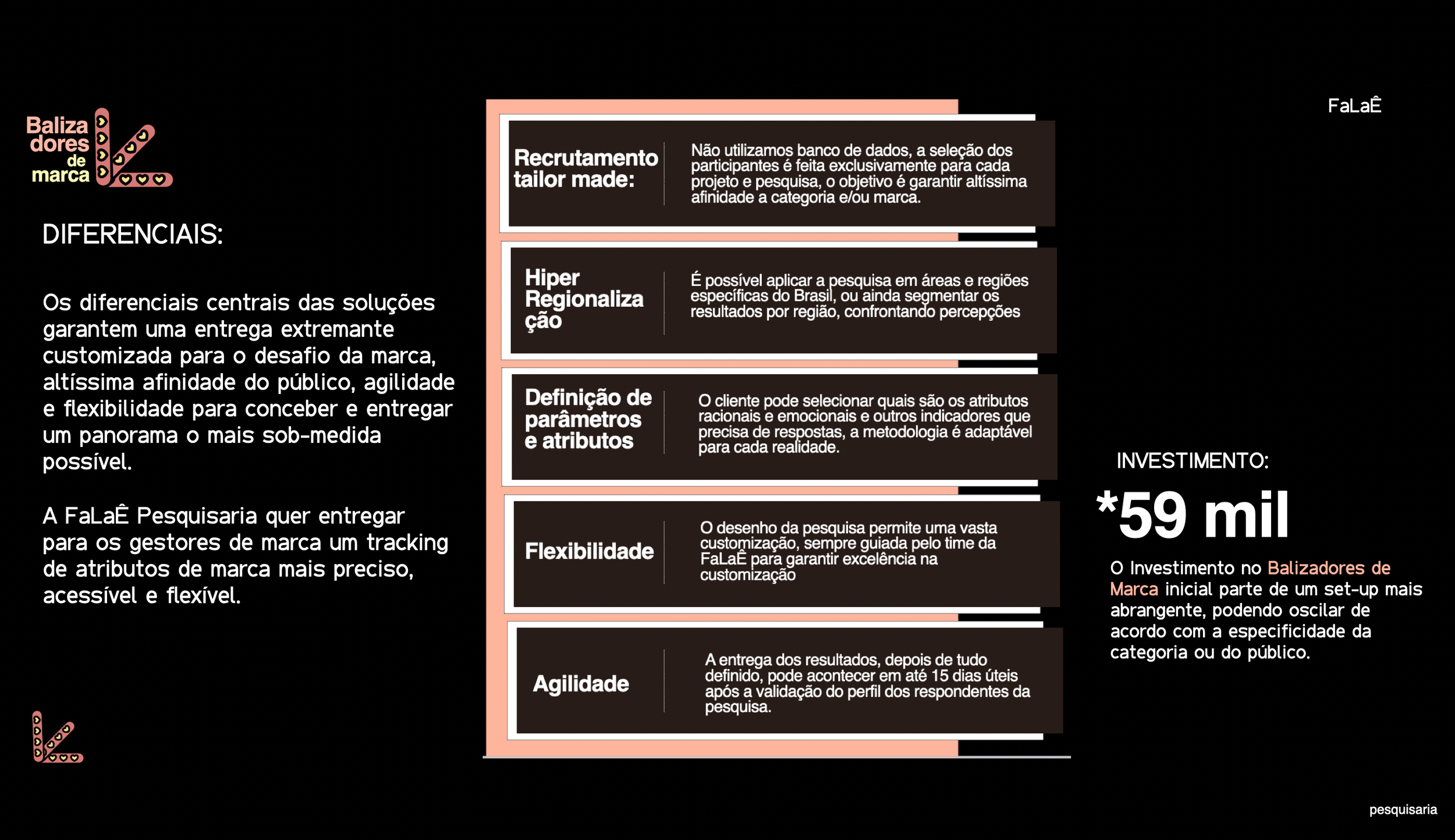 É um recorte de todos os produtos disponíveis na FaLaÊ feitos somente com pessoas de periferias e quebradas do Brasil. Tanto o focus group, as entrevistas em profundidades ou qualquer outro serviço podem ter essa execução. Os valores são os mesmos. Esse é um serviço de acesso a um dos maiores recortes de consumidores e empreendedores do Brasil, que por muitas vezes não são representados.